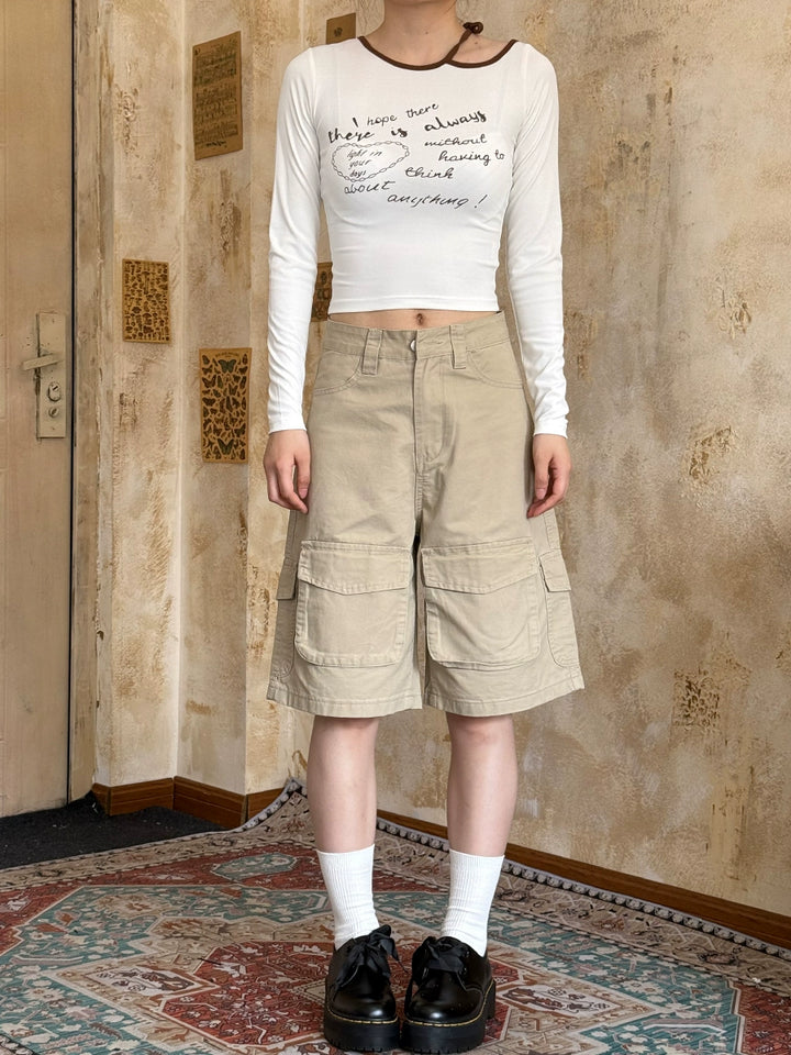 Embrace utility and style with the Dustybrim Khaki Multi-Pocket Cargo Shorts. These shorts are designed for both comfort and function, featuring a relaxed, straight-leg cut that works for all body types. With multiple pockets, they offer a practical and stylish solution for carrying your essentials, making them perfect for urban exploration or casual everyday wear.